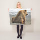Esquile la manta con el oso grizzly que mira sobre la playa y el agua creadas por el bearsandmore