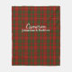 Acogedor para arriba con esta manta preciosa del paño grueso y suave de la tela escocesa, con los gráficos del modelo verde, rojo y amarillo clásico del tartán de Cameron del clan. Personalice el texto blanco para adaptarse a sus necesidades. Hace una gran idea para un regalo.