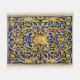La manta dorada y azul con diseños antiguos para inviernos fríos y un sentimiento de historia