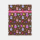 Manta marrón linda del paño grueso y suave, con los gráficos de los búhos coloridos y de las flores rosados y púrpuras del dibujo animado. Una banda rosada, funcionamientos a través del top, con el texto blanco listo para personalizar. Idea del regalo de la diversión a su niña preferida.