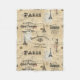 La torre Eiffel, París en tipografía del vintage y etiquetas francesas del vintage para los vinos finos, champán y cacao en un fondo de las postales francesas del vintage con escritura y los viejos sellos hace una manta y una adición preciosas e interesantes del paño grueso y suave a su decoración del sitio. Los artículos a juego están disponibles en mi tienda de Zazzle.