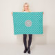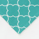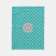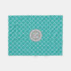 La manta de encargo del monograma en azul verde azulado de la turquesa, los grises carbones y el quatrefoil marroquí blanco enrejan el modelo.