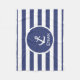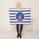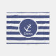 Esta manta azul y blanca tiene rayas horizontales. En el centro, hay el ancla y un lugar de una nave blanca para incorporar el nombre del beneficiario. Una manta personalizada es un bonito agregado al sitio de un niño.