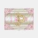 Manta de bebé princesa rosa y dorada con hermoso carruaje floral dorado en un precioso fondo floral de remolino rosa y dorado. Esta manta de bebé princesa se personaliza fácilmente con el nombre del bebé o el texto que elija en el estilo de fuente que prefiera.