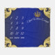 Manta de hito para niño con hermosa corona dorada y azul real sobre un fondo de remolino azul real y dorado. Esta hermosa manta de hito para bebé príncipe es perfecta para sesiones de fotos de hitos del bebé. Simplemente encuentra un par de marcos dorados bonitos y coloca uno alrededor del número y el otro alrededor del día, mes o año, y coloca al bebé debajo del área del nombre. También puedes mover la corona y el nombre según sea necesario. También puedes agregar más texto en la parte inferior y cambiar la fuente según tus preferencias.