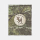 Una manta del paño grueso y suave que ofrece un ilustracion de un ciervo. El fondo es camuflaje. Personalice el nombre.