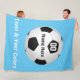 Manta personalizada del paño grueso y suave del balón de fútbol en sus colores y texto. Diseñador Linda de la LLAMADA para la AYUDA y los CAMBIOS: 239-949-9090 tipo en las 3 plantillas de la caja de texto su número o monograma, nombre del nombre del jugador y del equipo o su texto. Usted puede SUPRIMIR lo que sea del TEXTO y CAMBIAR el color de fondo azul de la manta del balón de fútbol y el texto blanco y negro a CUALQUIER COLOR. Diseñador Linda de la LLAMADA para la AYUDA o realizar los cambios del color y de diseño para usted sin costo extra.