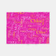 Texto de nombre corto tipográfico en rosa, amarillo y blanco sobre fondo rosa brillante personalizado diseño de manta. El color de fondo se puede cambiar si es necesario. Manta personalizada con texto gráfico divertido y personalizado. Ideal para el coche, camping para noches de invierno o salidas. Personaliza con tu propio nombre corto, actualmente dice Chloe. Para ayuda con la personalización y otros largos de nombre, por favor contáctame. © Arte y diseño por Sarah Trett para www.mylittleeden.com