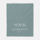 Como pieza coordinada de la colección Rustic Monogram de Lea Delaveris Design, esta manta presenta un fondo de color azul salvia suave de moda con un monograma rodeado de ramas junto con un apellido y una fecha establecida. Almohada a juego disponible. ¡Perfecto para un regalo de recién casados o regalo de ducha de novia!
