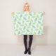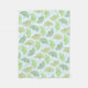 Una manta suave que ofrece un ilustracion verde en colores pastel del modelo del vector del ginkgo se va en sombras diversas del verde en un fondo azul claro.