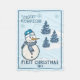 Un diseño lindo y divertido con un muñeco de nieve y árboles de Navidad para la primera Navidad del bebé. ¡Listo para ser personalizado!