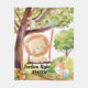 Hermoso y caprichoso diseño con un cachorro de león jugando en el columpio con otros animales como zorro, conejito, pájaros y una mariposa con elementos de naturaleza ondulada. ¡Añade a tu hijo o a cualquier nombre de destinatario para agregar un toque personal!