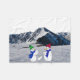 Hospédese cálido y acogedor en una fresca noche con este divertido diseño de manta con hombres de nieve jugando con bolas de nieve en la montaña.