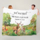 Una manta personalizada para una nueva pareja casada con un hermoso bulto rubio y ciervo de la casa en la pradera con una cita recién casada. Añade los nombres de la novia y del novio para personalizar.
