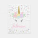 Manta unicornio de unicornio pastel adorable con cuerno de oro de bonito y puntos pastel de color arcoiris con espacio para texto personalizado.
