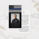 Honor a brave and dedicated police officer with this elegant memorial prayer card featuring a dignified Thin Blue Line flag design and a personalized photo tribute. The front showcases their picture framed in black and gold with the heartfelt sentiment IN LOVING MEMORY OF NAME, "Born" date and "End of Watch" date. The back includes a comforting prayer accented with a simple cross to support family and friends as they remember an officer who served with courage, honor and unwavering commitment. A meaningful keepsake for a police funeral, memorial service or Celebration of Life, this prayer card offers a lasting tribute to their service and sacrifice. Its small and portable size of 3.5x2" (wallet-sized) makes it convenient for loved ones to carry it with them as a reminder of your loved one’s life, service and spirit.