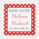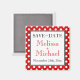 Elegante personalizado Guardar el imán de fecha para anunciar a su boda, diseñado con puntos de polka blancos sobre rojo. ¡Sin orden mínima!