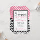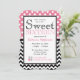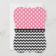 Estilo de la chaqueta, elegantes invitaciones dulces de dieciséis años con puntos de polka blanco sobre rosa en la mitad superior y un patrón zigzag de chevron negro y blanco en la mitad inferior. Personaliza con los detalles del fiesta y elige tu tipo de papel también!