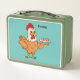 ¡Este pollo gracioso sirve huevos para la cena! Dibujado al estilo personalizado feliz.