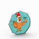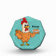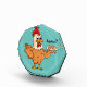 ¡Este pollo gracioso sirve huevos para la cena! Dibujado al estilo personalizado feliz.