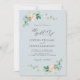 polvorienta invitación de boda floral azul y meloc