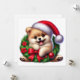 Alegren sus fiestas con esta esponjosa Pomerania acurrucada en una corona festiva. ¡Una forma encantadora de compartir la alegría de la Navidad!