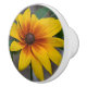 Esta perilla de cerámica tiene una flor amarilla en la familia de los suan de ojos negros. También se puede colocar este diseño en los cajones. Derechos reservados Marjorie Tietjen.