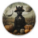 This whimsical Halloween artwork features a stylish black cat dressed as a Victorian witch, surrounded by a quirky array of jack-o'-lanterns under a surreal autumn sky. A perfect blend of spooky and charming, this fantasy print is ideal for Halloween lovers, gothic decor fans, and anyone who enjoys magical realism with a feline twist.