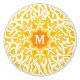 Este botón bonito del cajón de la casa/de la casa de verano de playa es inspirado por los arrecifes de coral y las estrellas de mar del océano. El modelo del arrecife de coral se hace en una mirada de la plantilla en blanco y un naranja-amarillo veraniego brillante. En el centro, ocho estrellas de mar forman un círculo alrededor de su letra de encargo del monograma.