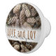 Los festivos y rústicos conos de pino acentúan este diseño clásico y elegante que desea las vacaciones Amor y Alegría.