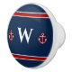 Pomo De Cerámica Anclaje monograma Bandas náuticas rojas y azules b