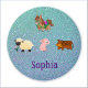 Diseño agradable con pequeños animales de corral adorables sobre un fondo purpurina. Personaliza con tu nombre/destinatario.