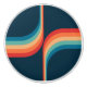 Ilustracion de diseño geométrico con arcos dobles de estilo retro con rayas turquesa, azul, rojo y beige sobre fondo azul oscuro.