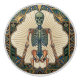Add a touch of gothic elegance and vintage flair to your home with this unique ceramic pull featuring a striking skeleton design. Inspired by the Art Nouveau movement, this piece showcases a detailed anatomical illustration of a skeleton surrounded by a decorative, geometric border in rich blues, greens, and golds. The intricate detailing and the vintage aesthetic make this pull a standout accessory for cabinets, drawers, or any piece of furniture needing a distinctive upgrade. It's perfect for Halloween enthusiasts, lovers of anatomical art, or anyone seeking to infuse their decor with a bit of macabre charm and artistic sophistication.