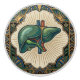 Add a touch of vintage charm and scientific elegance to your home with this exquisite ceramic pull featuring a detailed anatomical illustration of the human liver. The design is framed by intricate Art Deco-inspired motifs in rich blues, greens, and golds, reminiscent of a sunburst and botanical elements. This unique piece is perfect for those who appreciate the beauty of human anatomy and vintage aesthetics, bringing a sophisticated and educational flair to cabinets, drawers, or any furniture piece. Elevate your decor with this functional art that celebrates the marvel of the human body and the glamour of the Art Deco era.