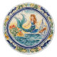 sunmery sicilian, italiano pintado a mano decoración, mediterráneo diseño portugués, azul marino océano marino, mítico cuento mitológico de sirenas, azul y amarillo colorido, auténtico cuadro clásico tradicional, antiguo primaveral rústico vintage, arte folclórico mexicano español talavera, "frontera circular de olas verdes"