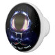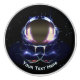 Una imagen fractal azul y púrpura que se parece al casco de un astronauta y los hombros sobre un fondo estrellado. Añade tu propio texto.