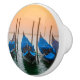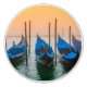 Tranquila ubicación junto al Doge's Palace de Venecia, Italia, con cuatro góndolas, todas juntas que dan a una hermosa puesta de sol niebla.