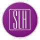 Texto blanco y marco blanco sobre morado (color de fondo cambiable).
