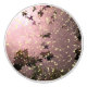 Un diseño de arte rosa, blanco, amarillo, verde y negro de la luz solar reflejado en el agua y hojas otoñales caídas.