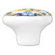Este pomo de cerámica tiene un diseño vibrante de rama de limón enmarcado por intrincados azulejos azules y dorados, los tradicionales azulejos de Portugal y España pintados a mano. Los limones dorados de plumón, con sus hojas verdes y azules, se sientan en un fondo blanco y fresco, mientras que el borde ornamentado añade una sensación de arte y sofisticación. La combinación de imágenes de cítricos frescos y azulejos decorativos crea un ambiente animado e intemporal, perfecto para traer un toque de encanto mediterráneo a su casa. Este botón de 1,5", hecho de cerámica suave y brillante, es robusto, fácil de instalar con el tornillo incluido, y es ideal para refrescantes gabinetes, cajones o muebles con un acento artesanal brillante.