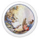 Personalice este tirón de botón impreso con una linda imagen de arte de ilustracion Beatrix Potter de la familia de conejos Creado en naranja de melocotón suave, azul y marrón con un acento de borde azul. Niza acento de guardería o de habitación infantil, coordenadas con lámparas, reloj, almohada y otros elementos decorativos de guardería en www.zazzle.com/kidsunique