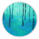 Paisaje contemporáneo de un bosque cubierto de glóbulos azules en primavera. Tranquilidad y tranquilidad en tonos azules y verdes. Arte original de Nic Squirrell.