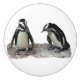 Este botón de puerta de cerámica ofrece los pingüinos africanos que se colocan en una repisa rocosa. Son los pájaros acuáticos, flightless cuyas alas tienen aletas convertidas. Cada uno tiene una raya negra y puntos negros en el pecho. El modelo de puntos es único para cada pingüino, apenas como huellas dactilares humanas. Tienen glándulas rosadas sobre sus ojos y pies rosados y negros.
