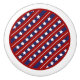 Botón de cerámica rojo patriótico de las barras y estrellas blancas y azules.