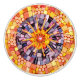 ¡Un alegre mosaico de medios mixtos hecho por mí! Incluye smalti amarillo, naranja y púrpura, cuentas de vidrio, caboquones vintage y un objeto encontrado.