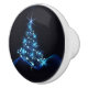 Pomo De Cerámica Brillo azul de estrellas en árbol de Navidad oscur