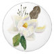 "Magnolia Caserío Rústico Elegante Campo Decorado En El Gabinete Se Extrae". Color de agua Magnolia flor de una sola flor con hojas de magnolia marrón y verde, follaje y ramas. Pintada por la artista y diseñadora con licencia internacional, Audrey Jeanne Roberts, copyright.