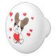 Perro pequeño, marrón y blanco, con corazón en garra sobre fondo blanco