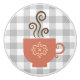 Un té o una taza de café de estilo retro adornado con un fondo de manta de búfalo blanca y gris. Esto sería perfecto para una casa de campo.